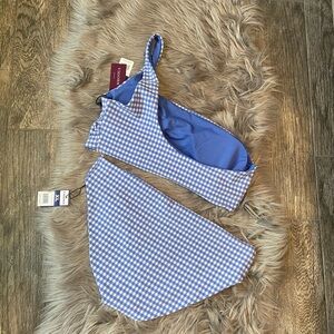 VIGOSS one shoulder bikini, XL, blue and checkered pattern. Pull over 2 piece bikini. Perfect for the beach, pool or vacation.