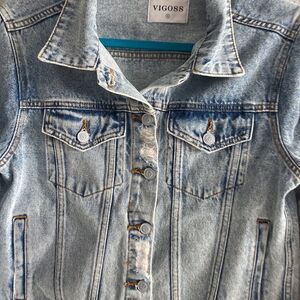 VIGOSS- Women’s light wash denim distress jacket- Size Small