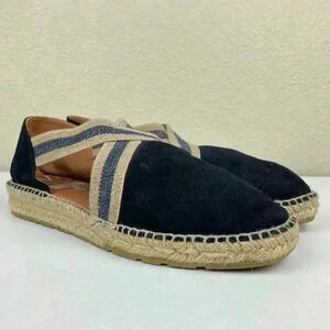 VIGUERA Women's 40 Dames Espadrille Flat Shoes Navy Blue Suede Cross Over Beach