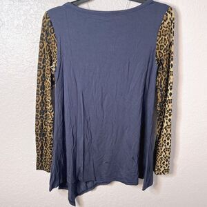 VIISHOW Women's SMALL Long Sleeve Leopard Print Navy Blue Asymmetrical Top NEW!