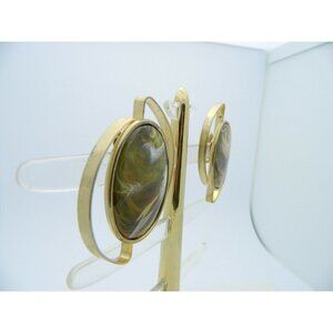 VIKING Signed Large Plastic Faux Marbled Earrings