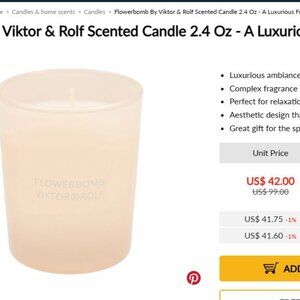 Enchanting Fragrance Journey-Indulge your senses with the exquisite Flowerbomb by Viktor & Rolf scented candle. Designed for women who appreciate luxury and elegance, this scented candle is crafted with a harmonious blend of lush fragrance notes. The enchanting scent comprises Osmanthus, Tea, Bergamot, Orchid, Rose, Freesia, African Orange Flower, Jasmine, Patchouli, and Musk, transforming any space into a fragrant escape. Whether you are buying for yourself or looking for the perfect gift, this candle offers an experience that captivates the mind and elevates the spirit.