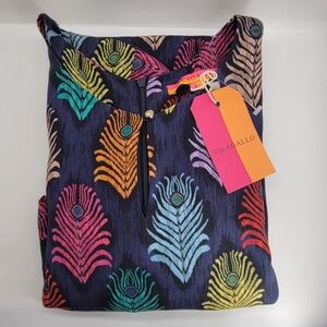VILAGALLO Shirt Dress Sz 42 US Large Purple Tropical Print Made in Portugal Zip