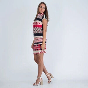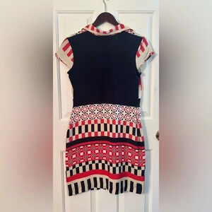 VILAGALLO Spanish Silk Stretch Horizontal Print Shirt Dress Sz 38 US 6 NEW COND
