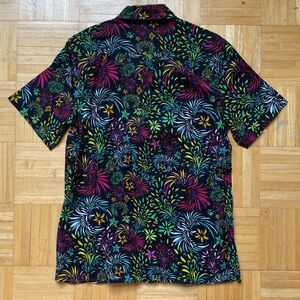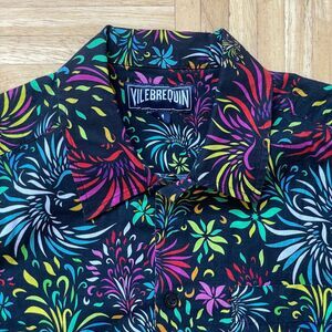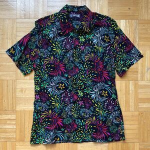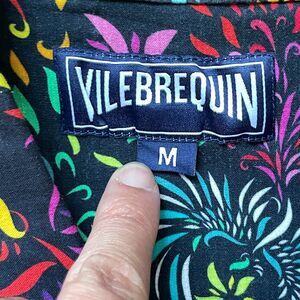 VILEBREQUIN Charli Linen Bowling Shirt Mens Medium Black Floral Evening Birds