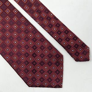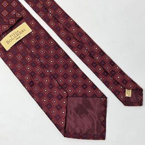 VILLA BOLGHERI SILK TIE RED BROWN GEOMETRIC LUXURY TEXTURED SATIN 4" X 59"