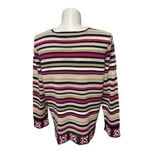 VILLAGER Sport Woman V-Neck Crochet Detail Striped Pullover Sweater Size 2X