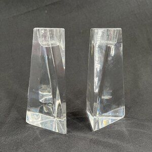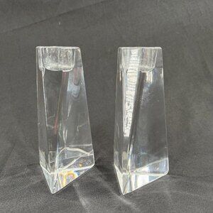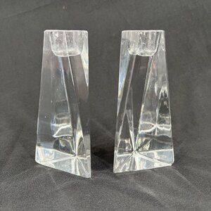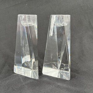 VILLEROY & BOCH GLASS TAPER CANDLESTICK HOLDERS PRISM CLEAR ART GLASS 5" PAIR