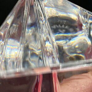 Villeroy & Boch Prisma Candlestick Here's a vintage lead crystal candlestick in the Prisma pattern from Villeroy & Boch. This candle holder is about 5" tall, with a triangular base about 2-3/8" on a side, which tapers to a six sided top, about 1-1/4" across. The round candlestick well is about 1" across. The Villeroy & Boch name is etched into the underside. Made in West Germany.This candlestick weighs a little over 1 pound, before boxing for shipment. It ships by USPS Priority Mail.No chips, no cracks, no nicks. A few fine, light scratches, tiny air bubbles may be found in or on the candlesticks.