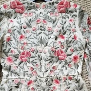 voile, floral design, trapeze style, embroidered detailing, rear closure, zip closure, lined interior, tube dress