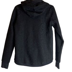 New without tags hooded and lined Athleisure jacket. Material is cotton polyester and spandex full zip long sleeves with slots at the sleeve for your thumb. Measures armpit to armpit 18 inches shoulder to ham 24.5 inches