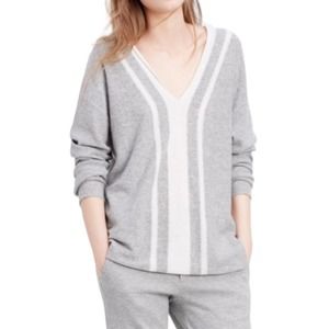VINCE 100% Cashmere Double V Pullover Sweater Long Sleeve Oversized Gray XS