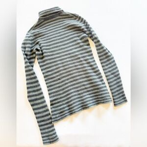 VINCE 100% Cashmere Womens Size Small Striped Turtleneck Sweater Black Gray