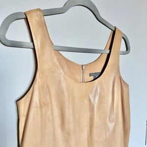 VINCE 100% Lamb Leather Sleeveless Tank Front Pocket Mini Shift Dress Tan Size 2