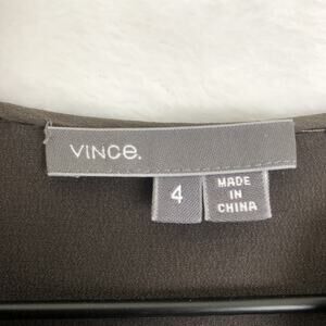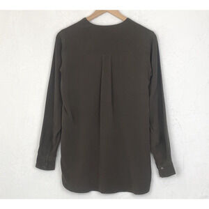 VINCE 100% Silk Tunic Top Women's Sz 4 Brown Long Sleeve Popover V-Neck Luxury
