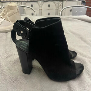 VINCE Addison Black Suede Leather Open Toe Heeled Booties Size 8.5