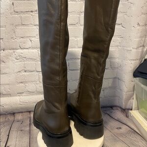 VINCE Army Green Brown Leather Knee-High Boots lug sole NWOT sz6