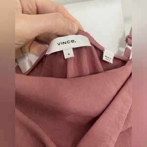 Add this beautiful Vince twist front cami midi length dress to your wardrobe today! Made with high-quality materials, this dress is perfect for any occasion. The solid pink color is eye-catching and will make you stand out in a crowd. The sleeveless design is perfect for summer, and the dress is easily paired with your favorite heels or flats. Don't miss out on this opportunity to add a stylish and comfortable piece to your collection.