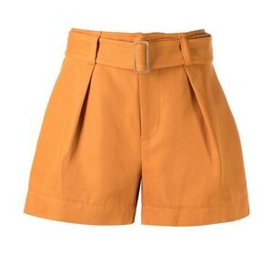 VINCE Belted Cotton Linen Twill Shorts Orange BNWT