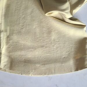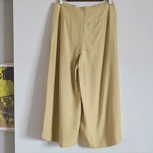 Topped by a sash belt and paperbag waist, these VINCE. cullotes open to a wide leg with sharply pressed single pleats. Concealed hook and zip fastening at the back. Color is 'Maiz', which is a yellow-beige.