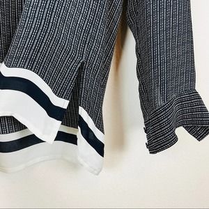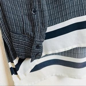 VINCE Black Cream Sheer Silk Georgette Long Sleeve Oversized Blouse Top XS Vneck