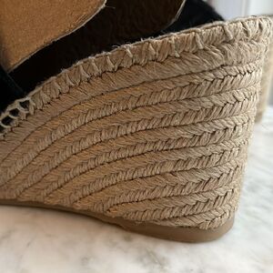VINCE Black Jute Wrapped Asymmetrical Garlin Wedge Slip On Sandals, 8.5, NWOB
