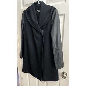 VINCE Black Wool Leather Zip Front Shawl Collar Jacket Coat