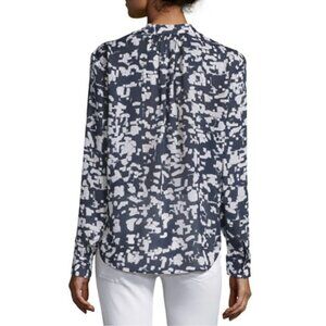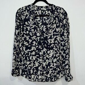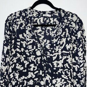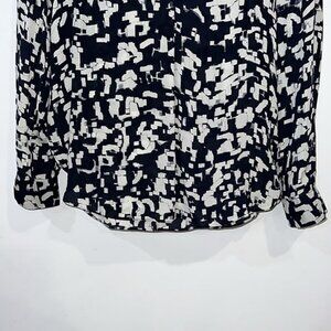 VINCE Black/White Confetti-Print Silk Popover V-neck Button up Blouse size 8
