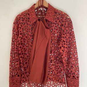 VINCE Burnt Red Large Holed Eyelet Blouse with Camisole: NWOT!