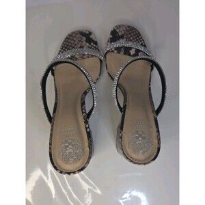 VINCE CAMUTO 8.5 Magaly Sandal Snakeskin Block Heels Rhinestone Double Strap NWT