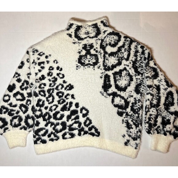 VINCE CAMUTO Animal Print Jacquard Eyelash Fuzzy Sweater Size L (Bx 18)