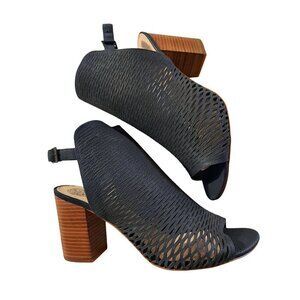 VINCE CAMUTO Badesti Black Suede Laser Cut Open Toe High Heel Booties NWOB Size