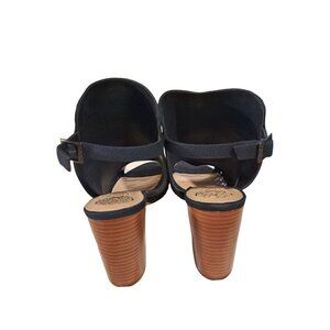 ☆ FEATURES – Open toe, buckle closure, block heel style, laser cut suede upper, man-made lining/sole, Vince Camuto wording and logo on footbeds and on the bottom of the shoes, silver hardware on buckle with “Vince Camuto”.
