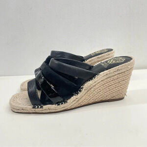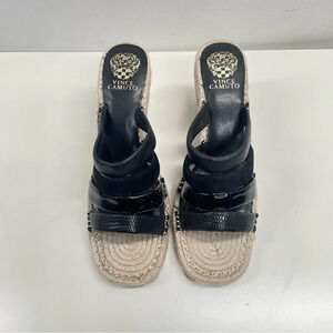 VINCE CAMUTO Black Molisana Wedge Slip On Leather Espadrille Shoes Size 11
