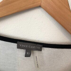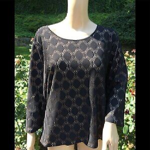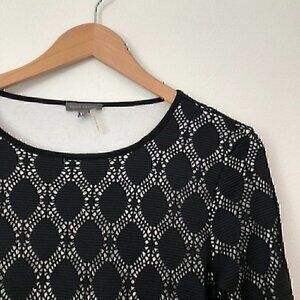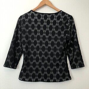 VINCE CAMUTO Black Overlay White Laser Cut Polka Dot 3/4 Sleeve Blouse Top sz XS