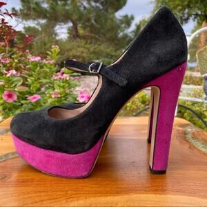 VINCE CAMUTO Black and Purple Suede Mary Jane Platform Pump Heel Size 6