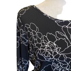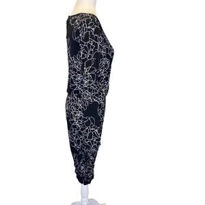 VINCE CAMUTO Black and White Abstract Flower Print Bodycon Ruched Dress Size Small