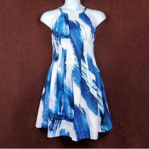 VINCE CAMUTO Blue Abstract Fit & Flare Dress 12