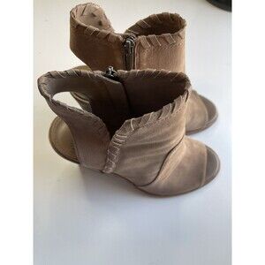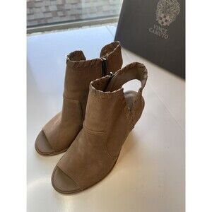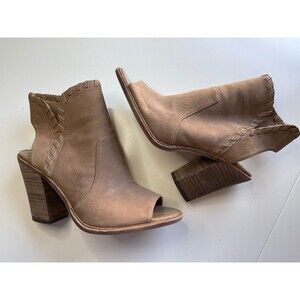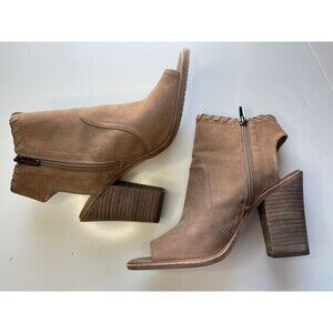 VINCE CAMUTO Bootie Womens 9.5 Leather Taupe Kicetta Peep Toe Stacked Heel Zip