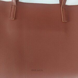 VINCE CAMUTO Brown Vegan Leather Tote Bag Office Professional Shoulder Handbag