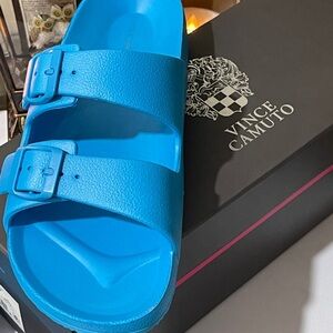 Brand New…Easy on, easy off, these slide sandals will add a bright pop of color to your everyday ensembles. From Vince Camuto.