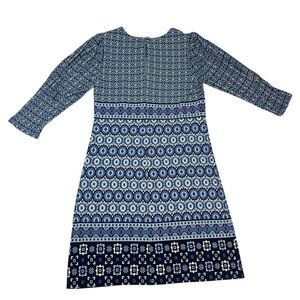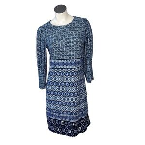 VINCE CAMUTO Casual Stretch Blue Geometric Long Sleeve Dress Women's Size 8