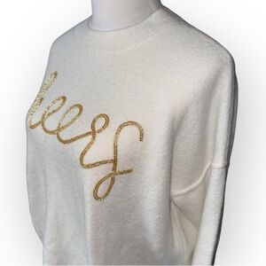New with tags! VINCE CAMUTO Cheers Sweater Ivory with Gold Beaded Embroidery Women’s Size XS