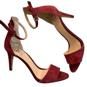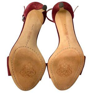 VINCE CAMUTO Court Suede Open Toe Ankle Strap Heels Chianti