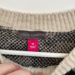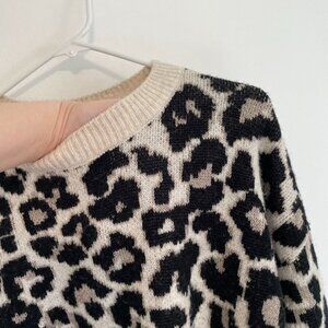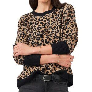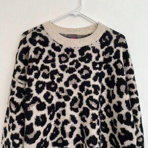 VINCE CAMUTO Cream Black Leopard Cheetah Animal Print Oversized Crewneck Sweater