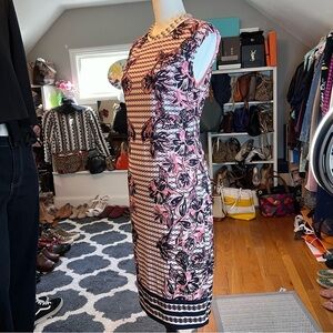 VINCE CAMUTO Crew Neck Flora Pink & Navy Stripped Stunning Dress Size 8