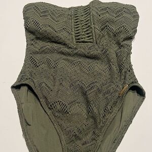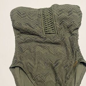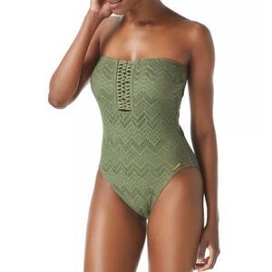 VINCE CAMUTO Crochet Bandeau One-Piece Swimsuit safari green New 8