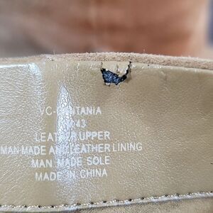 VINCE CAMUTO DANTANIA MID CALF SQUARE TOE BLOCK HEEL SUEDE BOOT SIZE 11 COLOR TAN Throw this boot on with your favorite pair of jeans or a sweater dress and tights. With a relaxed shaft, square toe, and unique island heel, it will be hard to find something with which these boots don't look fabulous. Shaft measures approximately Ankle from arc Boot opening measures approximately 12 around island heel square toe relaxed fit boot shaft Product detailsThrow this boot on with your favorite pair of jeans or a sweater dress and tights. With a relaxed shaft, square toe, and unique island heel, it will be hard to find something with which these boots don't look fabulous. Shaft measures approximately Ankle from arch Boot opening measures approximately 12 around island heel square toe relaxed fit boot shaft Specifications Material Suede Insole Material Suede Toe Style Round Toe, Closed Toe Shoe Heel Style Block Heel Height 3.25 in Shoe Closure Zip-Up Gender THIS ITEMS IS BRAND NEW WITH TAG NO BOX CHECK THE PICTURES(FYI ONE OF THE SHOE HAVE A TINY DAMAGE ON ONE THE TOP OF THE BOOT CHECK THE PICTURES)
