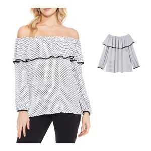 VINCE CAMUTO Droplet Geo Ruffled Off Shoulder Top