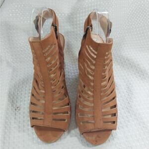 From Vince CAMUTO are these adorable heels, sandals, with a ladder front of multi straps! In fawn beige/tan faux suede leather, they feature a modified wedge heel in a triangular shape! Open toe, sling back, inside zipper! 3.25" heel, Size 10M, Excellent! *Condition Note: a few light water spots are on the front left, plz see pix! Thus the super low price! Otherwise: Superb EUC Condition! **ABSOLUTELY GUARANTEED CONDITION: EUC MINTY-EXCELLENT TO LIKE-NEW, by Lily @HauteClub!***